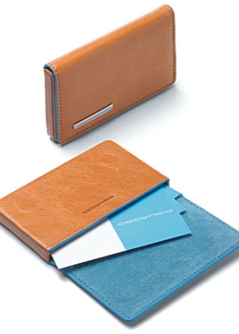 The Italian brand Piquadro, which specializes in the production of leather accessories for business, has in its range a separate line of high-quality men's business card holders. Most of them are made in the classical style, in black, blue, blue, gray, brown.