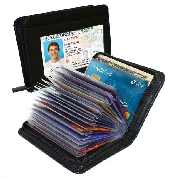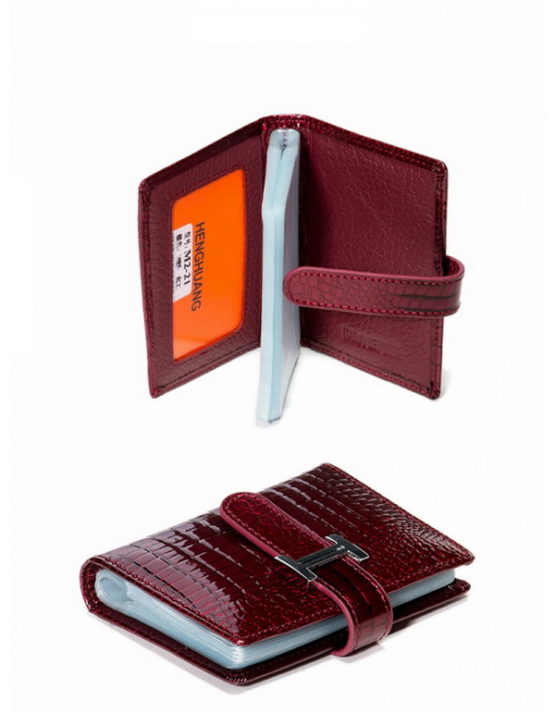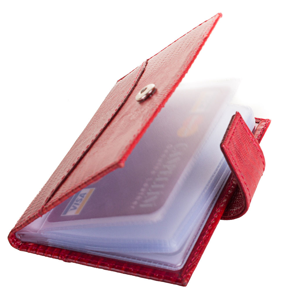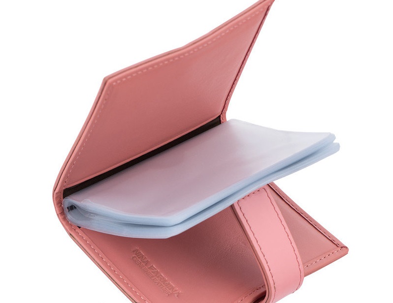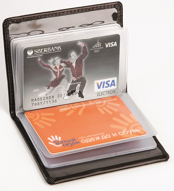 Credit card is a purse for storing credit cards only. Often, they are very similar to business cards, differing only in large size (as credit cards are thicker than standard business cards), and holders are made of more durable plastic. A purse with several pockets on each page is one of the most popular types of credit card.