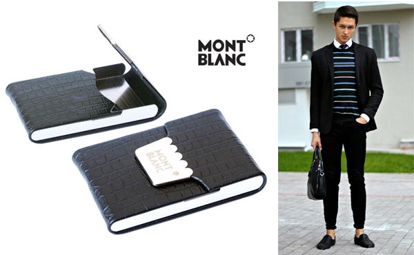 Montblanc has been associated with the manufacture of luxury stationery for more than a century: fountain pens, ballpoint pens, and markers. To date, the company's range has expanded significantly. Now the brand produces and leather products (bags, wallets, purses, briefcases and much more). Mont Blanc business cards are made of genuine leather, some are additionally decorated with silk.