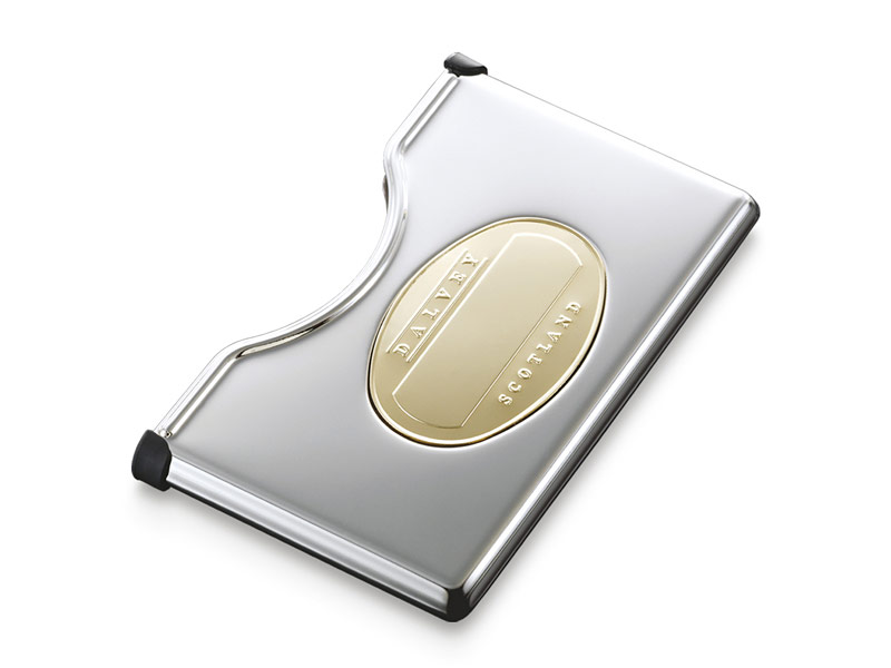 The Scottish company Dalvey, which occupies a leading position in the market of men's accessories, creates unique things from high-quality materials. Business cards of this brand of stainless steel in shape resemble lighters. The manufacturer seeks to adhere to the so-called Victorian style. Dalvey's slim card holders look elegant and light.. On this accessory, you can make an engraving with the name of the owner, as well as with the company logo for a gift to the boss or employee.