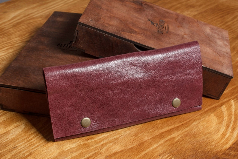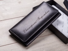 Products from calf leather are the softest, they are very pleasant to the touch. The thickness of this material is much less, which ensures their elasticity. Wallets are guaranteed to serve for a long time, they will not appear defects. Sewn from thin leather, they are great for embossing.