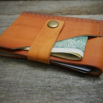 By minimalist options include wallets made from a single piece of leather with minimal processing. Most often, such models are equipped with one or two compartments. Wallets from a whole piece of leather are made by hand, so their cost is always quite high. Such accessories are very discreet. They are decorated with embossed on the skin or painted in a solid color.