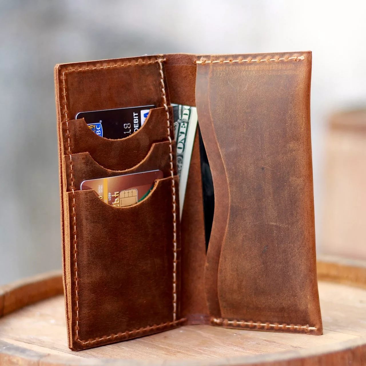 - Slightly stretch the fabric with your fingers. Genuine leather almost immediately takes its form. Such a wallet will not bend, will avoid cracks and creases.