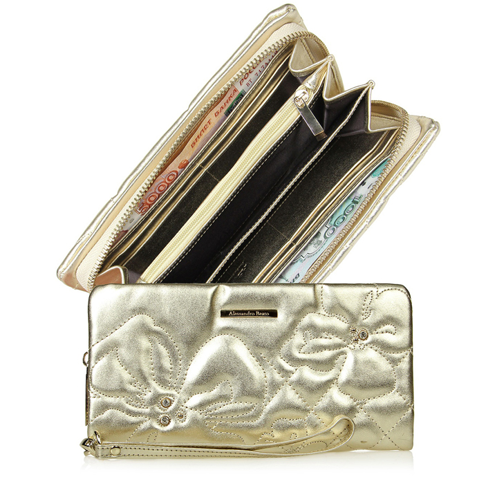 Choose a wallet with a metal decor need to carefully. Gold plating quickly erased and spoils the view. Manufacturers of expensive accessories use a galvanic method. It allows you to keep the decor for a long time. Steel products are cheaper, but they do not peel off.