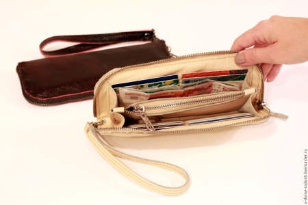 Classic women's wallet with a zipper or riveting allows you to store notes in the straightened form. Simply open it and easily get the money.
