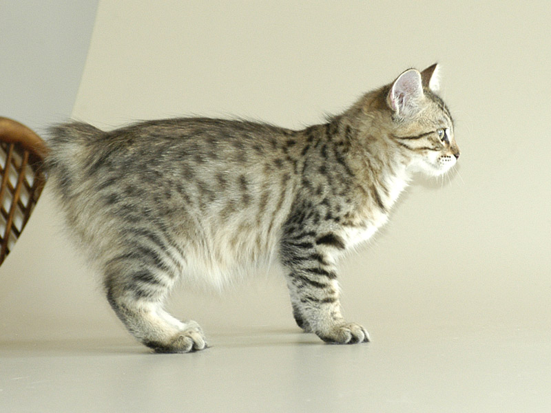 This is a completely new breed, which was born as a result of the fact that two breeds of cats were crossed: wild forest cats with a short tail and simple domestic cats.