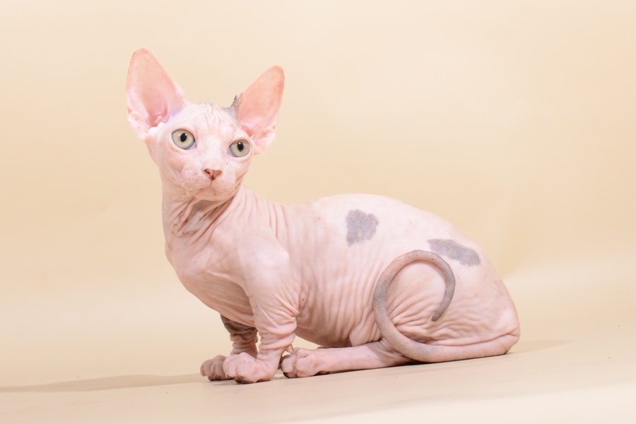 This is a very rare and expensive breed that has an unusual appearance.The animal has a small, but at the same time, stocky body, the legs are very short. The body has absolutely no hair, as it was obtained by crossing two breeds: the munchkin and the sphinx. The first representatives were born at the beginning of the XXI century.