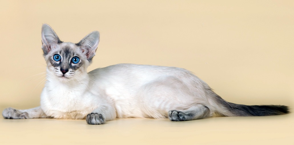 This breed of cats was born as a result of the crossing of Siamese cats whose wool is slightly longer than usual. The result was a breed of cats with a fringe on the tail. In addition, these cats are very graceful. They have a wedge-shaped head with a narrow muzzle and a long nose. Their ears are in the shape of a triangle, their eyes are slightly slanting and almond-shaped.