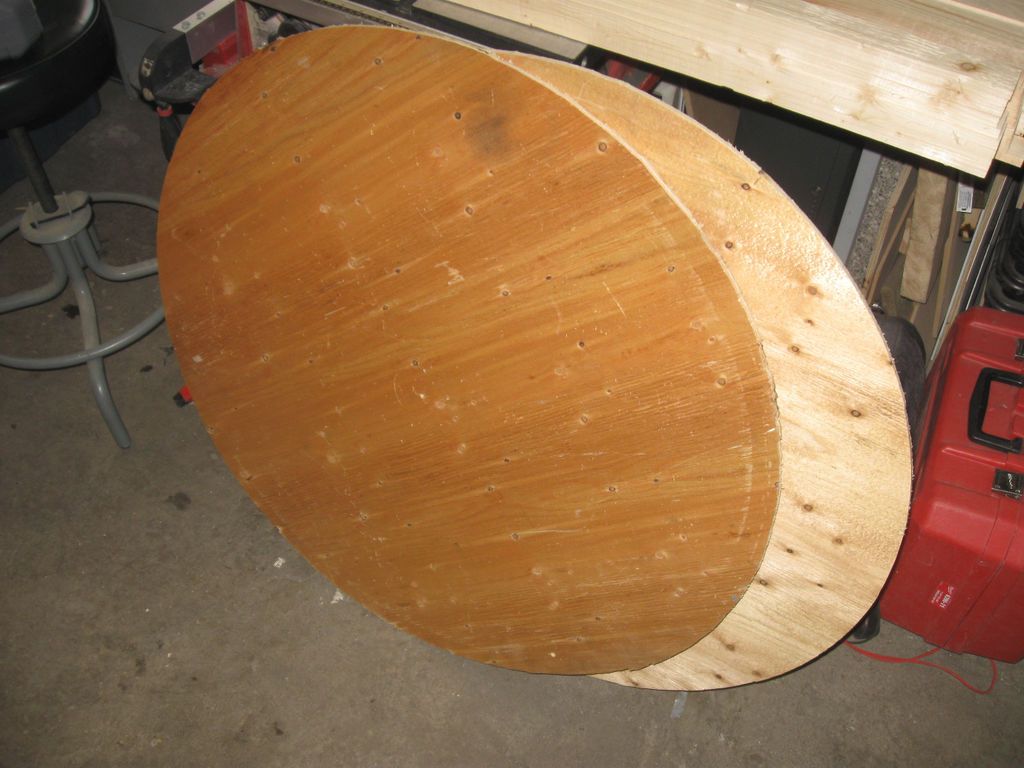 First of all, on the sheets of plywood it is necessary to outline the boundaries of the two circles, which will serve as a frame for the future simulator. It is desirable that the diameter of each was at least one meter. Next, you need to cut two circles and fasten them together at a distance of at least thirty centimeters with the help of bars.