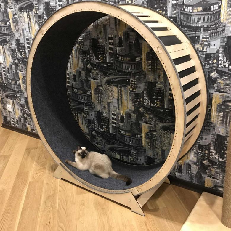 Running wheels for cats are just beginning to gain popularity in Russia. Prices for such simulators are quite high, and finding a product in a small town is not always possible. You can, of course, order a wheel in an online store, but then it will not be possible to pre-inspect it for defects and you will have to believe the seller or the description on the site.