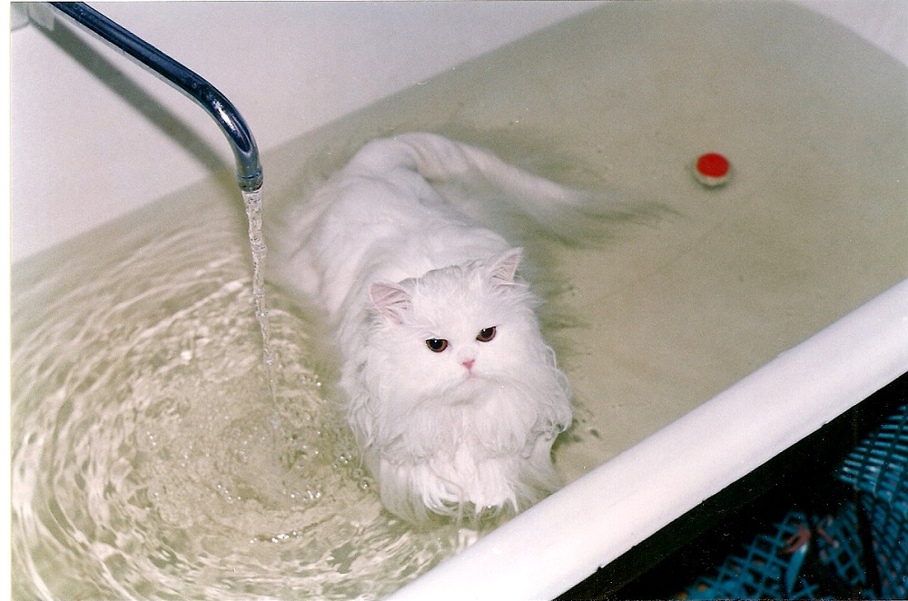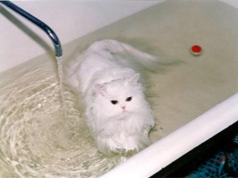 White Persian cats require regular washing and combing. The kitten is trained to water procedures from the very first day of appearance in the house.Bathe the snow-white pet once every 14 days using special shampoos and conditioners. After the procedure, the "fluffy" is wrapped in a soft towel, and after a few minutes they begin to gently comb the wool. It can be pre-coated with a softening spray that will ease the process.