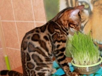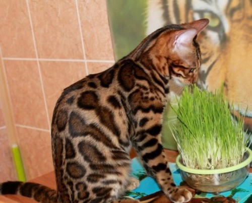 - Small kittens and adult pets with pleasure eat germinated grains of wheat, oats and cat grass. At home, it is easy to grow these plants, so useful for the pet. They help get rid of pieces of wool in the digestive tract and saturate the body with vitamins.