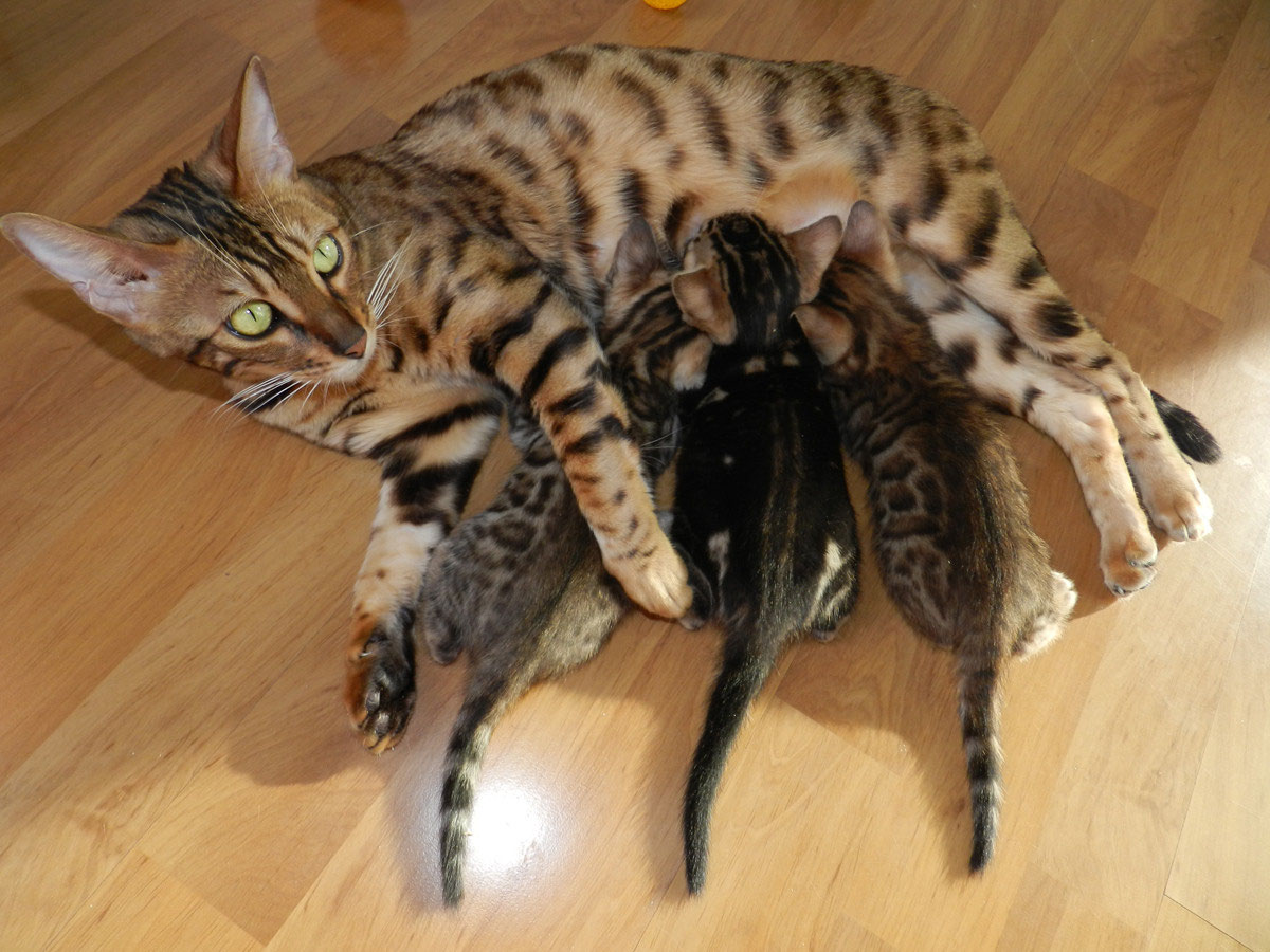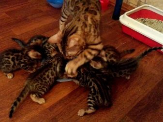 Due to the fact that Bengalis are large animals, and their average weight is 7-8 kg, large fruits form in cats, and as a result, pregnancy can be complicated. Therefore, a well-designed menu and diet are important for cat mothers, both during the kittens and in the postpartum period.