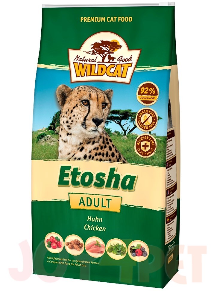 - Wildcat etosha. This product belongs to the expensive options. It is of German production. It includes 46% protein and 23% fat. It is worth noting that the protein is taken from both chicken and chicken flour. This feed does not contain cereal crops, but is saturated with special prebiotics.