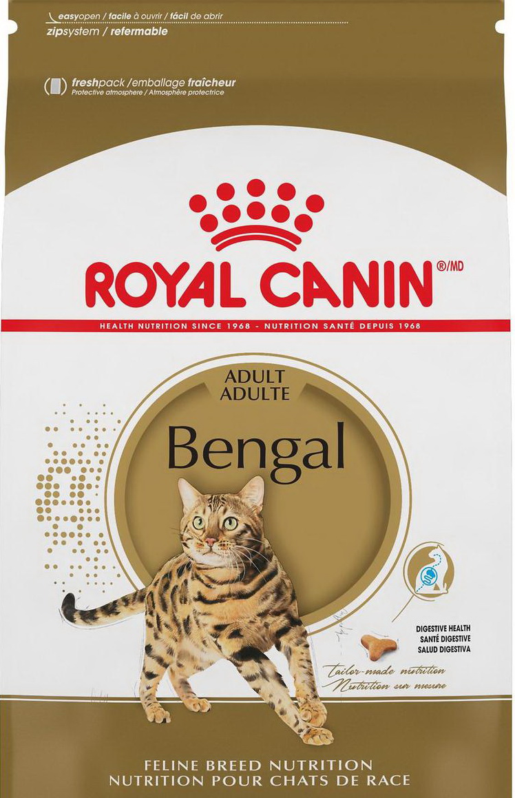 - Royal Canin Bengal Adult. This product belongs to the premium class. It is made from good raw materials, while it is relatively inexpensive. This food is intended exclusively for healthy adult cats, it is forbidden to buy it for kittens - for them is presented another option from the manufacturer. This French product includes 40% protein and 18% fat, as well as all the necessary vitamins.