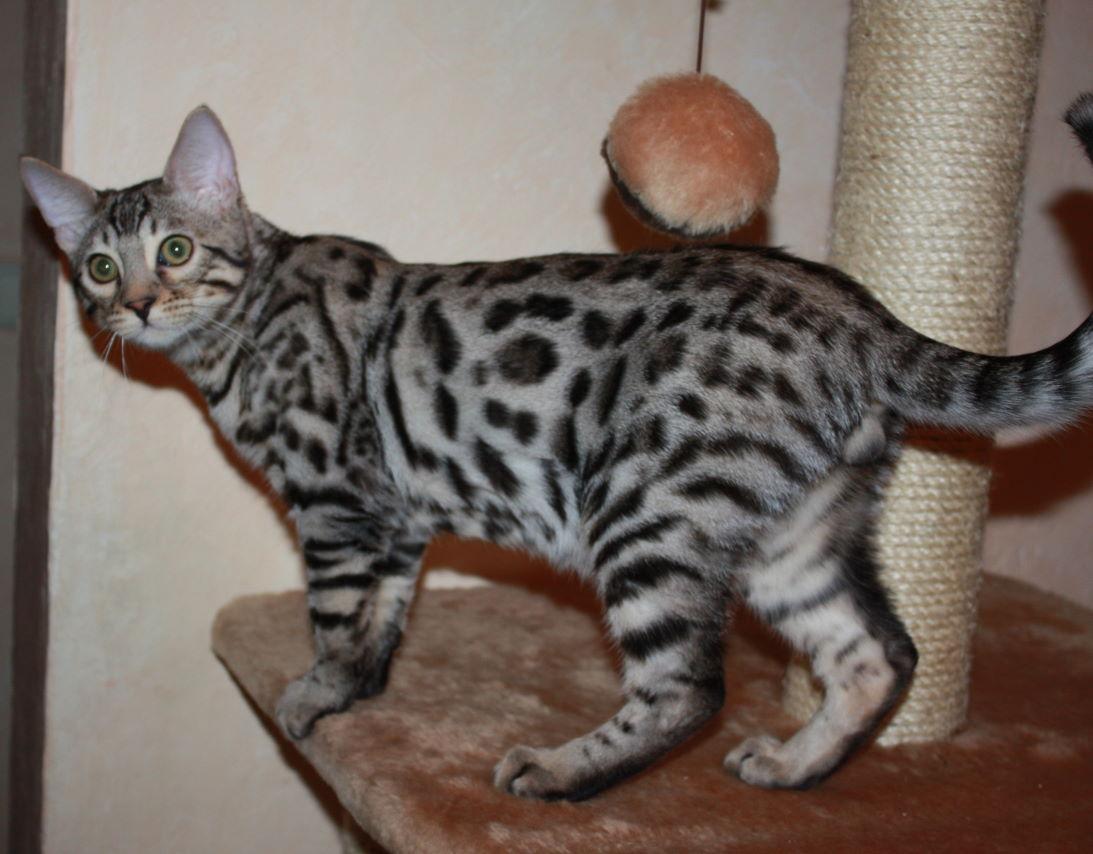 Among the undoubted advantages of silver cats can be noted a very extravagant appearance with a sufficiently large for the cat family size. Bengals are real hunters, they are very active and mobile. In addition, it is impossible not to note the high intellectual level of these animals.