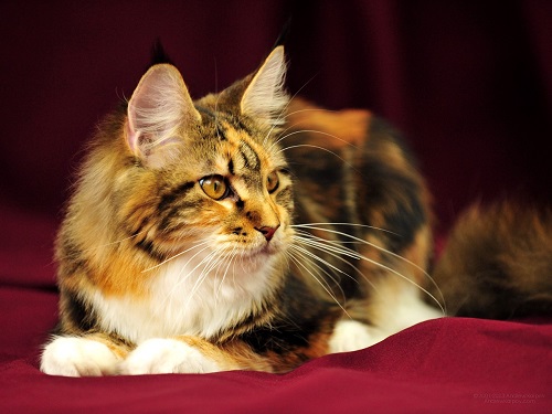The aboriginal American breed of Maine Coon or Maine Coon cat comes from the northeastern American state of Maine. The result was a natural breed under the influence of the harsh climate. The first mentions of the Maine Coon date from the beginning of the 70s of the XIX century, and the list of feline breeds of the Maine occupy the fifth place. Officially, breed standards were recorded only in 1967, and twenty years later the breed began to gain popularity.