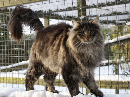 Cats of this breed are considered one of the largest domestic cats. The height of the animal varies from a quarter of a meter to a little over 40 cm. The cats weigh from 6 to 8 kg, the cats are much lighter - 3.5-5.5 kg, but the emasculated individuals are one and a half times heavier. The length of an adult without a tail is about a meter, and the full length is 1.20 m. The body of the longest cat reached 123 cm.