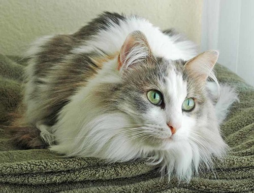 The Norwegian forest beauty is similar in character and origin to the Siberian cat. Introduced in Norway in the 16th century, the Angora cat has acclimatized and adapted to survival in harsh conditions, acquiring a thick undercoat and long smooth guard hairs with water-repellent properties.