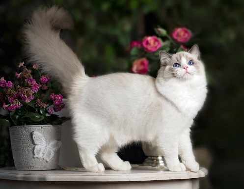 Ragdoll cats are the forefathers of ragaffins and differ from them only in their coloring. The cat got its name for the ability to completely relax at the hands of the owner, hanging like a rag doll (this is exactly what the word "ragdoll" translates from English).