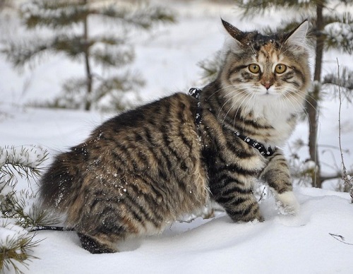 In the XVI century beyond the Urals, the first representatives of the Siberian cat appeared. It is believed that the ancestor of the breed is a Bukhara cat, brought to the Siberian lands by merchants and settlers. Under the influence of winds, frost and snow, cats developed thick fur with a rich undercoat, protecting it from adverse weather conditions.