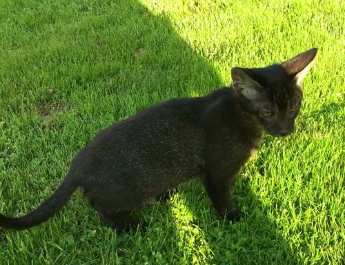 As a result, a cat was obtained, which is very attached to the person and has a maximum of trust.