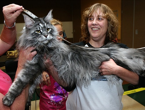 Among them is the world's largest domestic cat Maine Coon. By the time they reach adulthood (the Maine Coons are five years old), Stewie, namely the name of a pet, from nose to tip of the tail has grown to 1 meter 23 cm and 19 mm. This record was made in the Guinness book after neighbors and familiar hosts often began to pay attention to the enormous size of the pet. And still Stewie is the owner of the longest tail in the world among domestic cats. Its length is 415 mm, while the average length of this process in cats is about 300 mm.