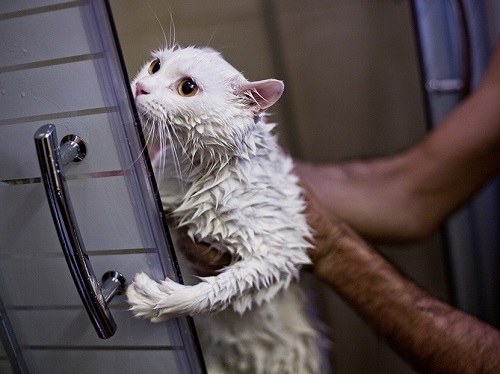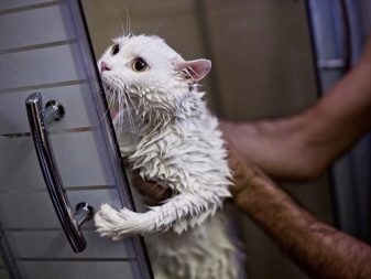 Be sure to bathe your pet, using a special shampoo for this, which must fully match the color of the cat. Water should be no higher than +38 degrees Celsius. It is necessary to ensure that while bathing soapy water does not get into the eyes or ears. After this pet should be wrapped in a warm towel, and then put him closer to the heat, de he will be able to dry completely.