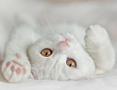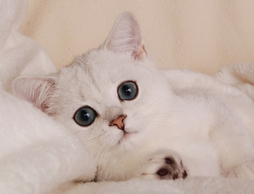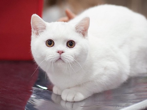 It is worth noting that all British snowmen are very beautiful, and this is due to the combination of white color and plush wool. Such color implies the absence of any other shades, except for white, both in cats and cats of the British breed. Purebred British should not have any spots or traces of “smoke”. In addition, these cats eyelids, paw pads, as well as the tip of their nose have a pink color.