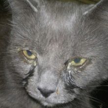 - It happens that there are secretions around the eyes, and it occurs in kittens and in adults. For cleaning, use a cotton swab previously soaked in an eye wash. If the discharge is purulent in nature, then the pet should definitely show the vet.