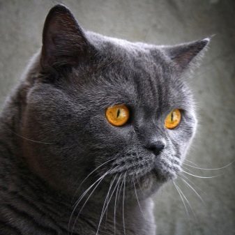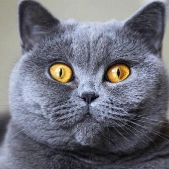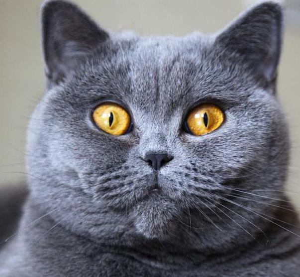 For a start, it is worth more to consider the description of the breed. Blue British cat is quite large in size, characterized by muscularity. It has small, but widely spaced ears. Straight cats like many. Representatives of this breed have practically round eyes, the color of which can be from yellow to deep orange. Their nose is rather short and wide.