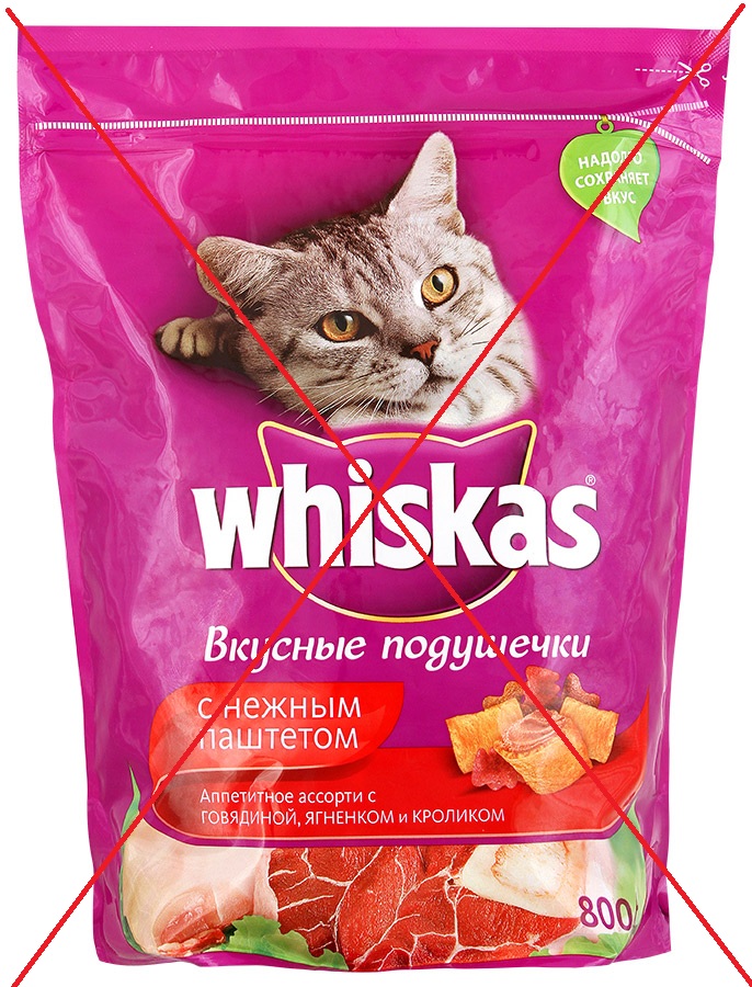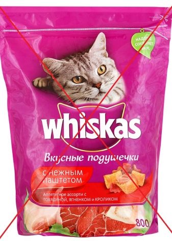 - Ready feed. Today a wide range of ready-made feeds is presented for both kittens and adults. Preference should be given to feed from reputable manufacturers. It is strictly forbidden to buy Whiskas products, since it includes a fairly large number of harmful components. If we consider protein, which is the main component of the finished feed, it is made from the bone of carcasses and skins.