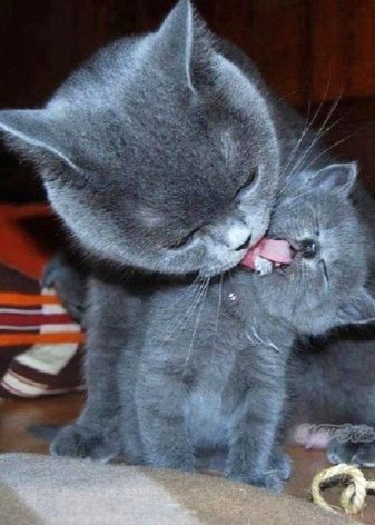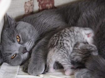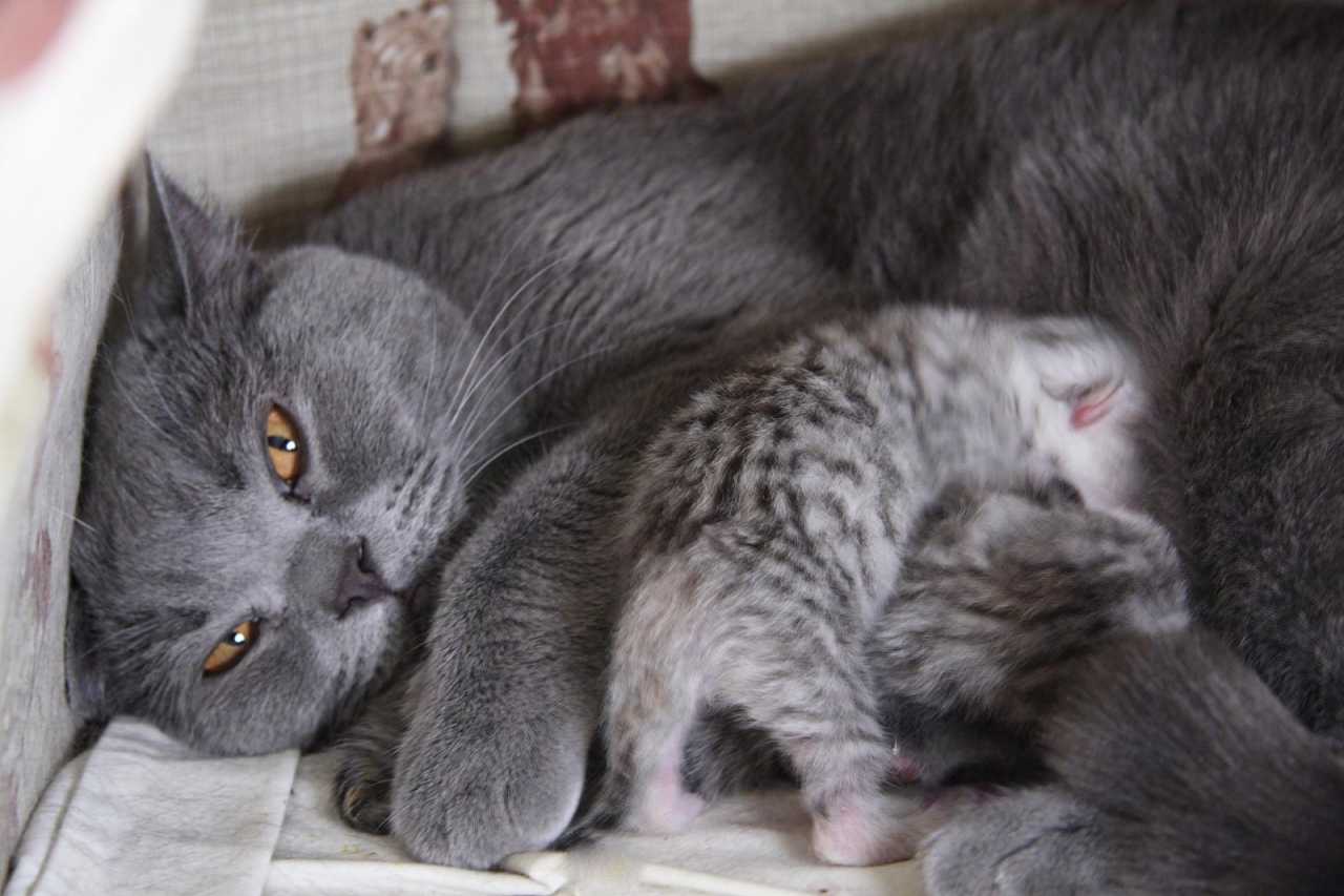 British cats are good moms. From the first minutes of birth, they begin to take care of the babies, leaving them only for urgent reasons.