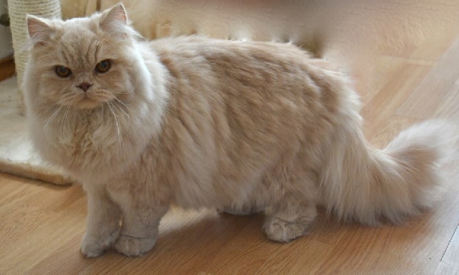 Like the British short-haired, the hair of the long-haired cat is soft, velvety with a very thick undercoat, pleasant to the touch. It is not difficult to care for such a cat compared to the Persian breed. Ostinki animal fur never fall into mats, the fight which requires a lot of effort.