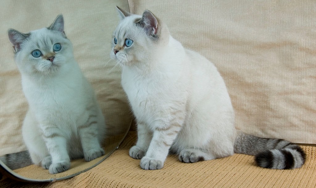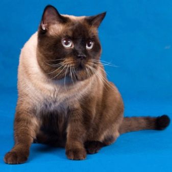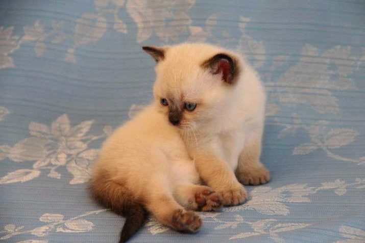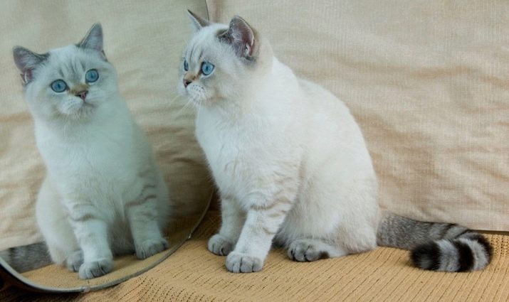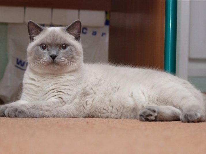 Another interesting type of coloring found in British cats - color point. This color is found in the breed of Siamese cats, when the whole body is light, and the muzzle, ears, feet of paws and the tip of the tail are darker. An indispensable condition for the British with this coat color - blue eyes. Due to the insufficiency of the genetic material, the breeding of this breed is problematic.