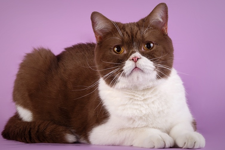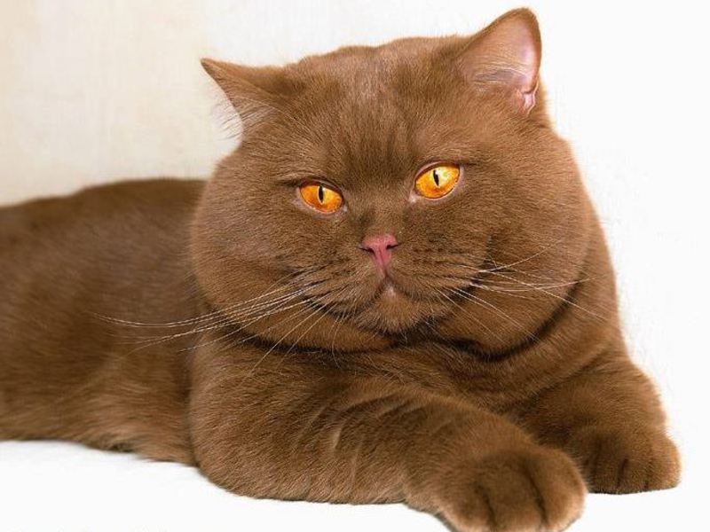 - Chocolate. This color has appeared relatively recently, so there is little chance to meet him at exhibitions. But he has already become a favorite at various exhibitions. In contrast to the blue group, dark shades are valued here more, although there are semitones from light brown, almost beige to coffee, almost black. The nose and paw pads are also dark brown, with bright yellow to coppery-brown eyes. The peculiarity of chocolate colored kittens is that the color does not form immediately and finally forms at about the age of 1.5 years.