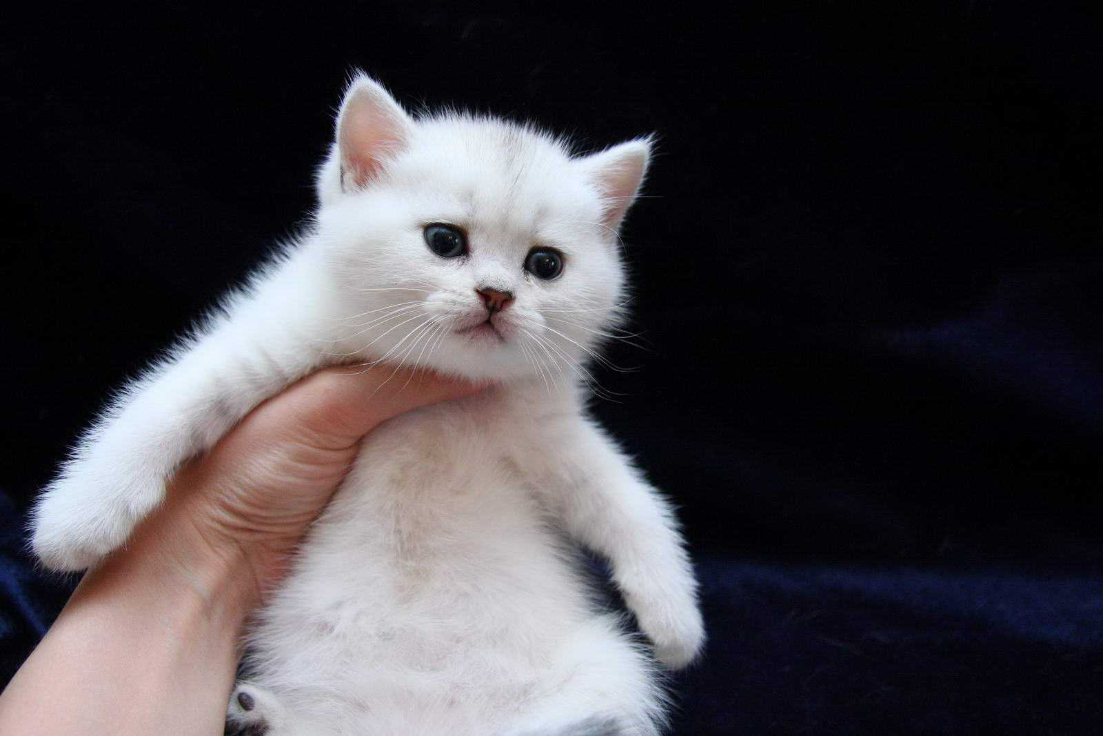 - White. As in the case of getting black color, it is extremely difficult to achieve perfect white. The fact is that offspring from two parents with white hair often have congenital problems with the hearing aid. The color should be clear, without the slightest hint of yellowness or other shade - this is considered a breed deficiency. Often, kittens are born with colorful spots that should disappear closer to the first year of life. To achieve the perfect color is quite difficult, so he was not put on stream, and such kittens are valued by breeders. The nose and legs of white kittens are pale-pink, without a sharp pigment. Eye color can be a classic yellow-green, as well as blue.