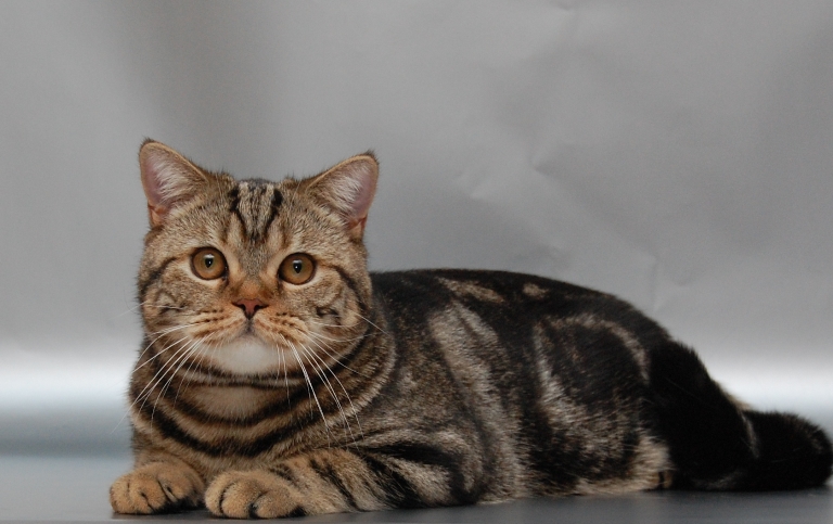 British cats Brown-tabby have amazing color of the whole body. Very black color, reminds coal soot. The nose has a slightly red tint, has a contour liner. A distinctive feature is called the spotted tail of the animal.