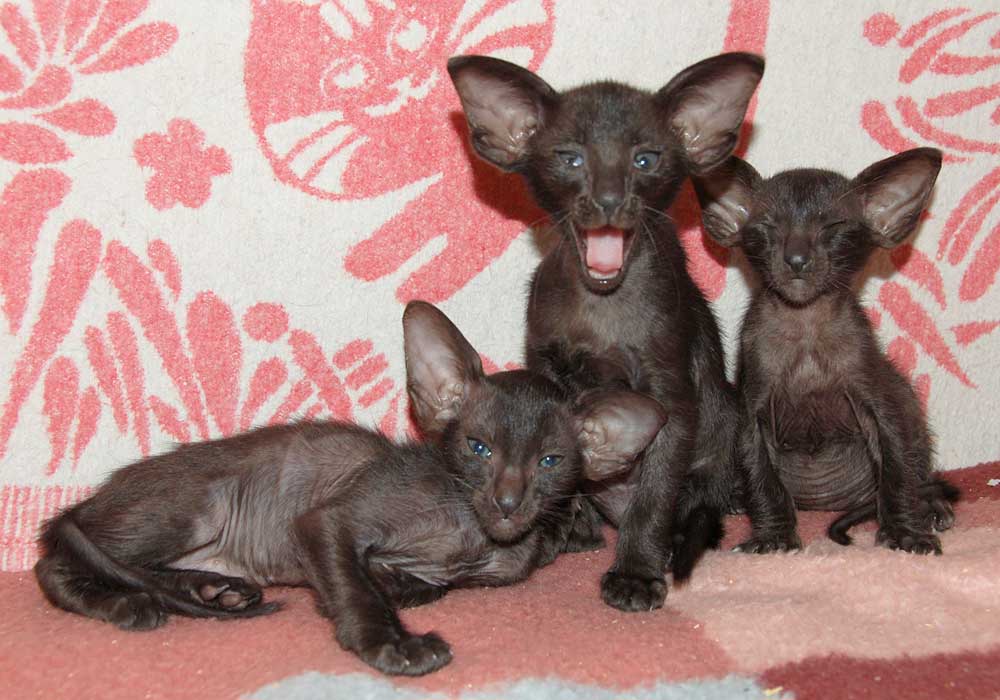 - Oriental kittens, like adult representatives of this breed, love to spin around people, so you need to be careful and cautious. This is especially true for owners of black kittens, which are easily overlooked in the shade.