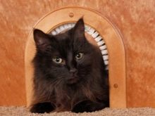 To constantly not open, close the door to the room, there are special small doors to the toilet for cats. The door for the cat is a prototype of the same design for humans. The design can be with a hole for the passage of the animal or always remain open.