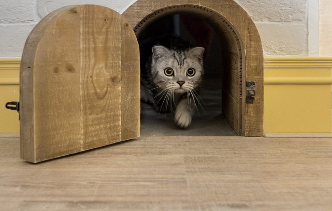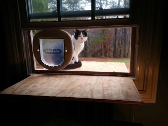 Through such a device, the cat can move freely between the rooms without assistance. And the owner is calm, and the cat is happy.
