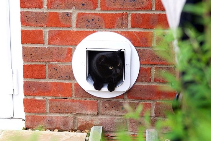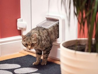 The door is an improved adaptation. Such a design, as a rule, is supplied with a magnetic lock (which responds only to a key located on the collar of the animal) and is stuffed with electronics. Thus, only your cat or cat can enter this door. Using the installation of such a mechanism you can get rid of odors, keep noise insulation at the proper level and protect your home.