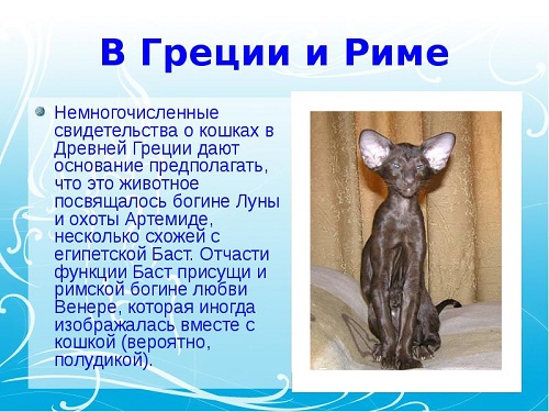 - Residents of Ancient Rome with particular respect for these animals, they worshiped them. For example, the goddess Bast had a cat's head. It was strictly forbidden for the population to harm these pets. During the fire, cats were the first to be carried out of the house. In the event of their death, the master was in deep mourning and shaved his eyebrows.