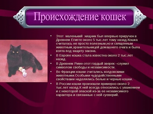 Scientists are not completely aware of when the cat was domesticated, some of them are still arguing about when this happened.Often a natural question arises as to why people needed cats, because they did not give milk or meat, could not transport cargo or guard a dwelling.