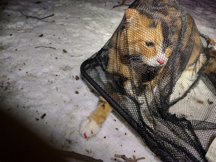 If a person decided to catch a street cat, then you should not use a bag or a blanket for this, as well as any other objects that look like them.