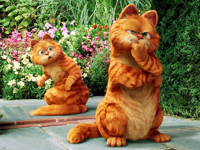 - Garfield. A well-known character comedy family. When calling his pet by a similar name, the owner must understand that the similarity between a real and a virtual animal must be significant. The fur of a domestic kid should match the red color of the cartoon character. By the nature of the cat simply must be lazy and still commit reckless acts.