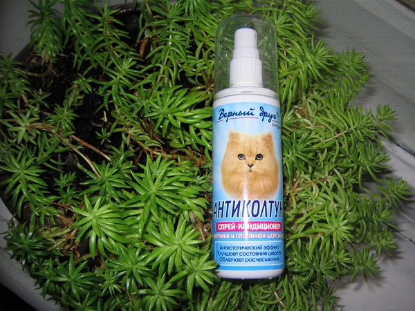 - After you have combed your pet, its wool should be treated with any antistatic agent, for example, with a special spray for disentangling tangles. The tool will help to gently unravel the hairs and prevent new formation of tangles. Feedback on its use is mostly positive, but only in those cases where the process of the appearance of mats has not been greatly launched.
