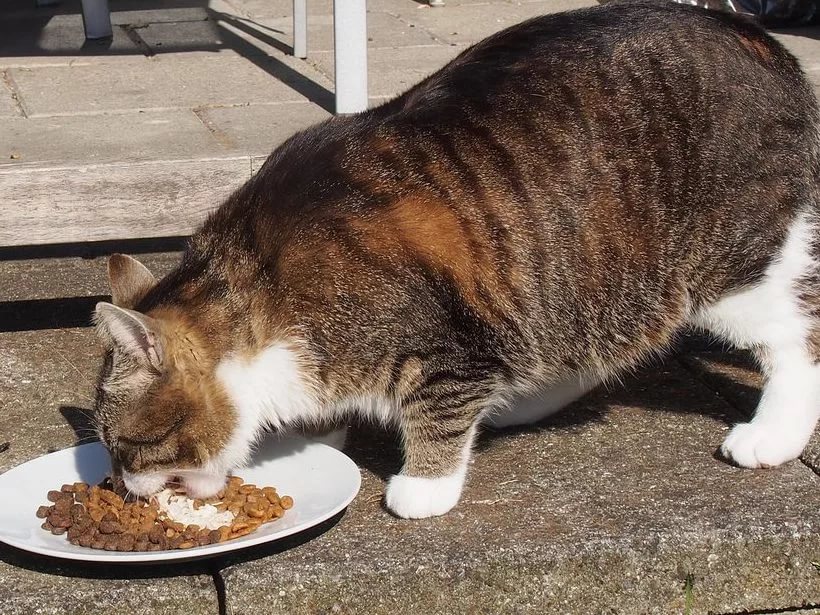 Another solution is to feed the animal only twice a day, but over long periods, leaving unlimited access to dry food. A cat can eat it whenever it wants. However, if the pet is greedy, he can immediately consume the entire supply of food. Lack of any control can quickly lead to obesity, so watch out for your pet, and if he tries to eat everything at once, access to feed is better to exclude and continue feeding on schedule.