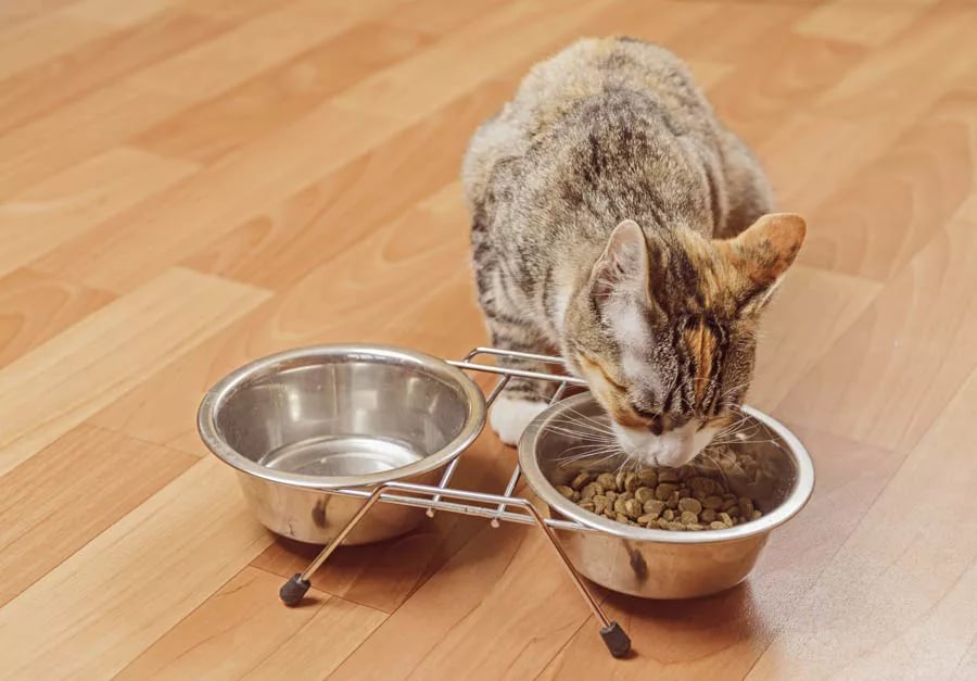If you feed your pet dry food, it is necessary to ensure the water content in food from 8 to 10%, because animals satisfy their need for fluids mainly when they eat. You also need to provide a bowl of water and provide the cat with constant access to it.