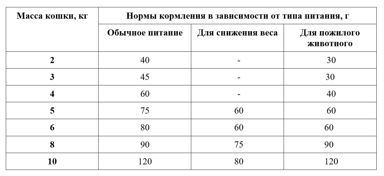 As a rule, on a pack with dry food there is a table by which you can determine how much food you need for a particular animal.